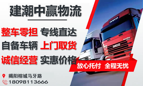 同时,为了方便广大客户从揭阳物流到湖州的不同运输时效和物流成本要求,建潮中赢物流特推出揭阳到湖州多种运输方式,以此来降低从揭阳到湖州运输的物流成本,提高到的物流效率,以便为新老客户提供更加完善的从揭阳到湖州的一站式物流服务!